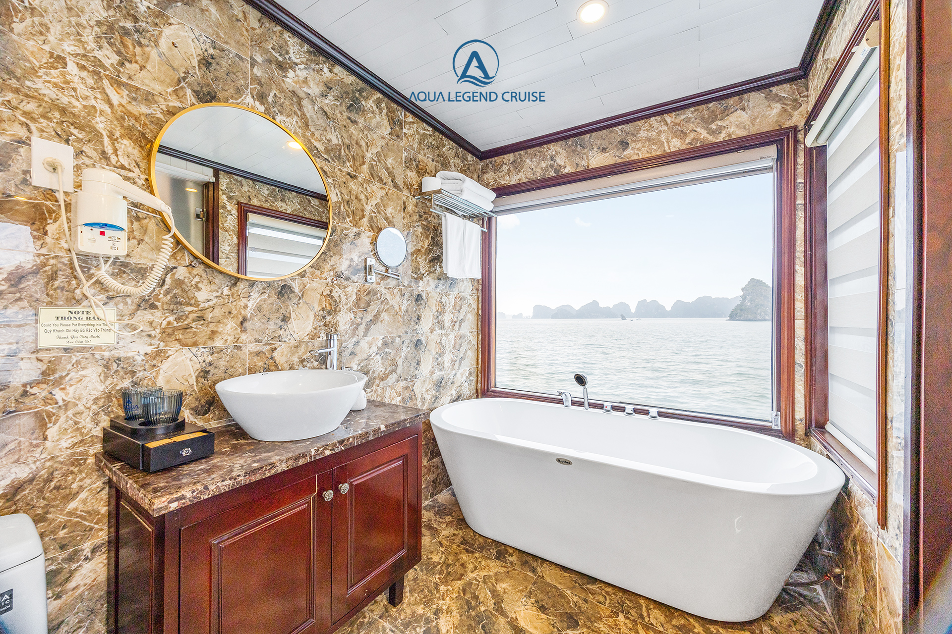 The Aqua King Suite Balcony on the Aqua Legend cruise ship offers a luxurious and spacious retreat located on the second deck. Spanning 35 m², the room is exquisitely designed to ensure maximum comfort and privacy for guests. Equipped with a private balcony and a high-end bathtub, it provides the perfect setting for complete relaxation during your luxury cruise experience.